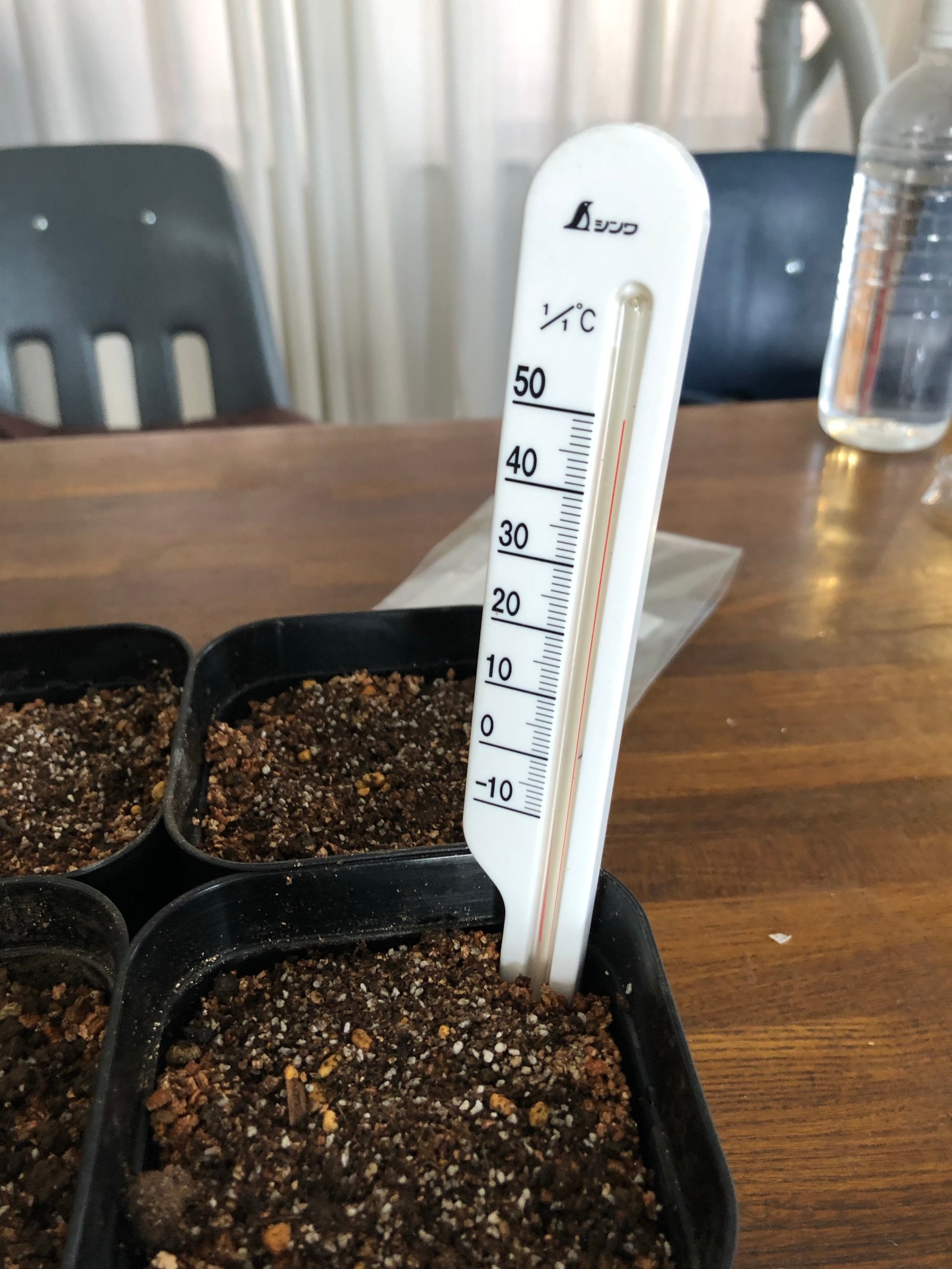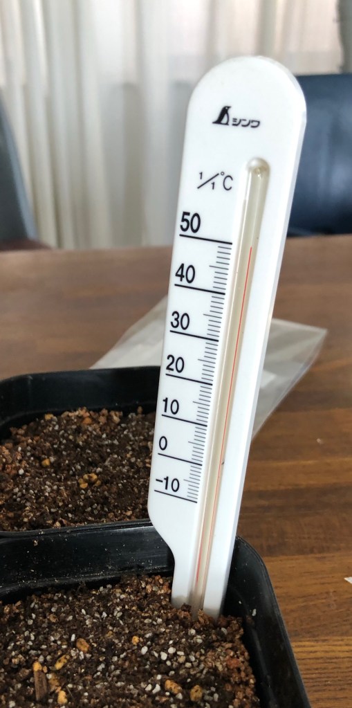 土に地温計を差し込んで確認してください。