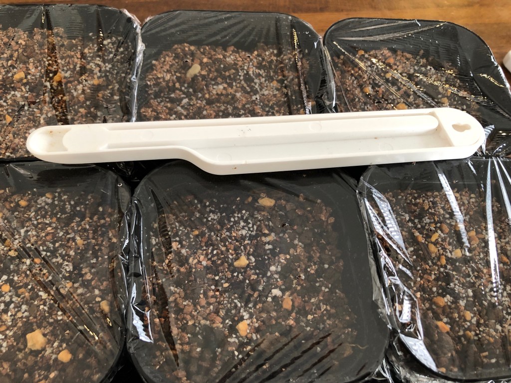 種まき用土をぱらぱらっと。(上写真)